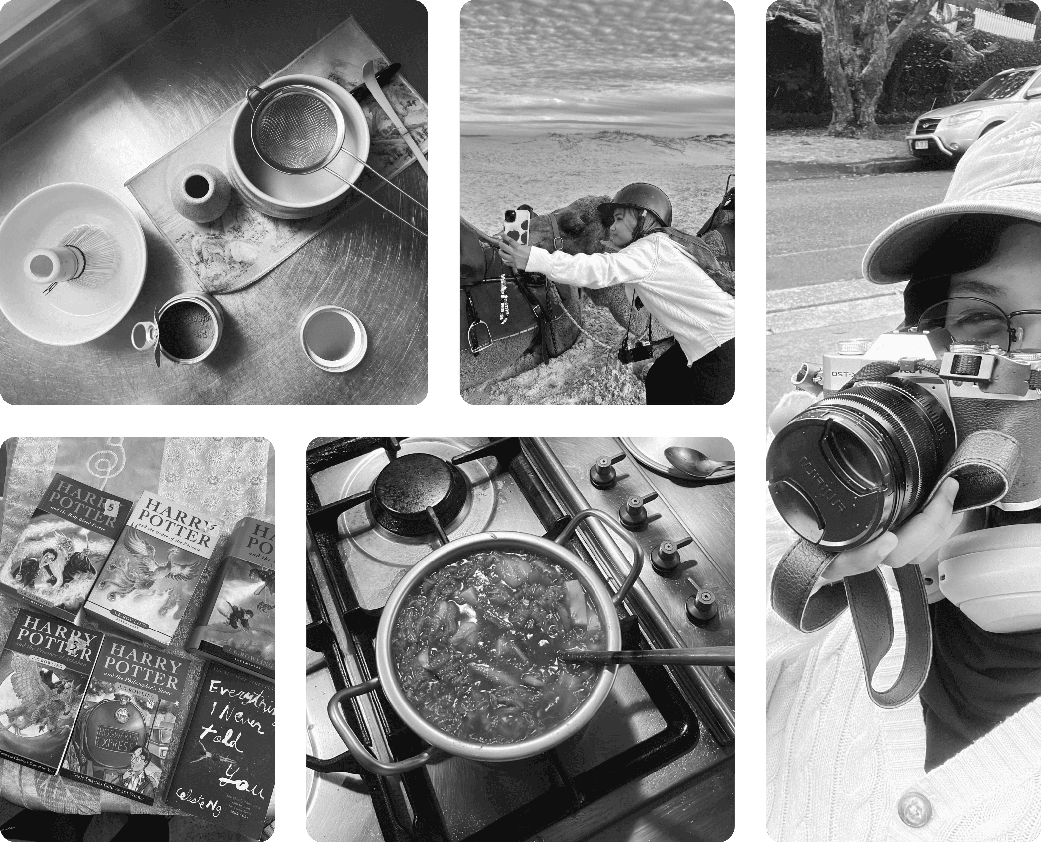 If I’m not working, you might catch me whisking some good ol' matcha🍵 (which I love very much!), wandering around the city, travelling, or trying new things. I also read books, mostly fiction books. There I attached one of my favorite book series of all time! I do enjoy cooking as well (though I’m not a professional chef, but at least my food is edible and tastes good to me!). I'm also into photography these days!